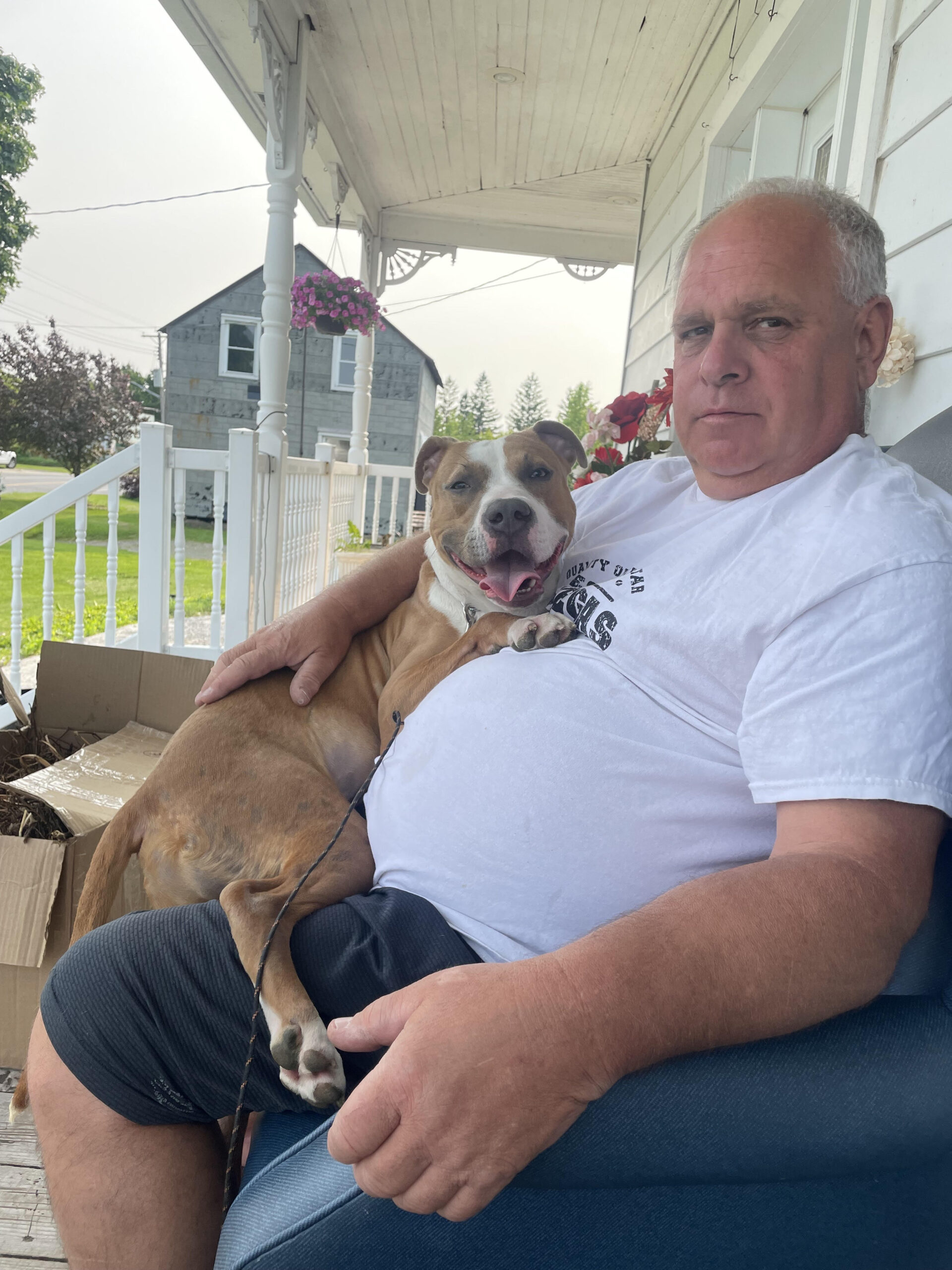 Meet Doug, a delightful five-year-old American Bulldog who has transformed from a resilient stray into a beloved family member. Doug’s journey began at the Ontario Stormont Dundas & Glengarry Animal Centre in Cornwall, where he arrived in unfortunate circumstances – underweight and grappling with skin problems. Found wandering the streets of Cornwall, he was brought to the centre by a compassionate individual who recognized his urgent need for help.